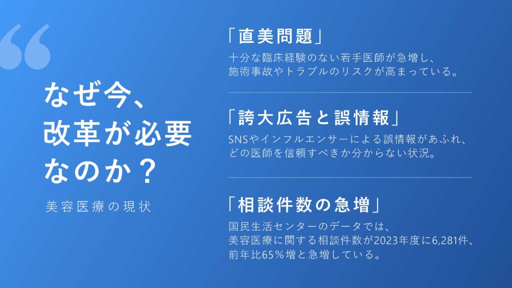 誤情報や過度な広告に惑わされず、安心して美容医療を選べる社会を目指す